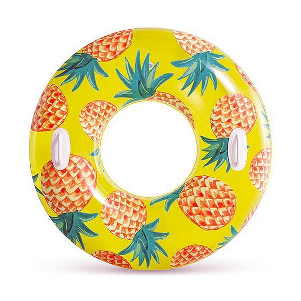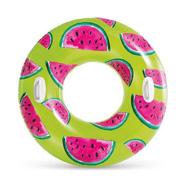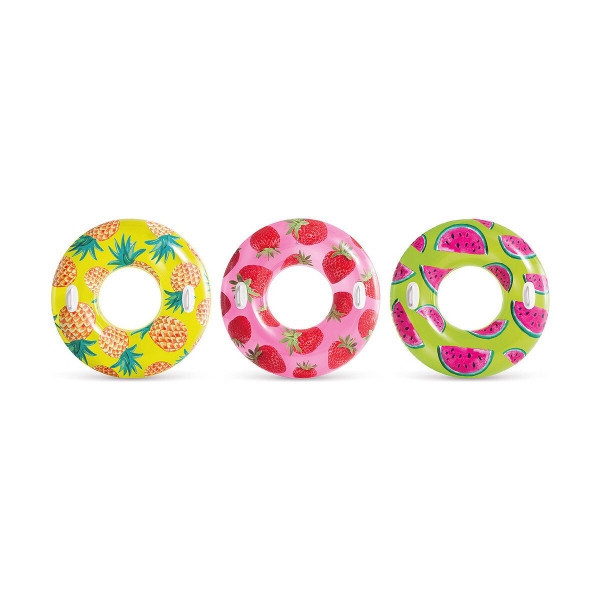 Ez a rendkívüli Intex felfújható gyűrű minden vízi szórakozás szerelmesét el fogja nyűgözni. A gyűrű színes dizájnja trópusi gyümölcs motívummal rendelkezik, amely biztosan mindenki számára vonzó. Kiváló minőségű és tartós vinilből készült.