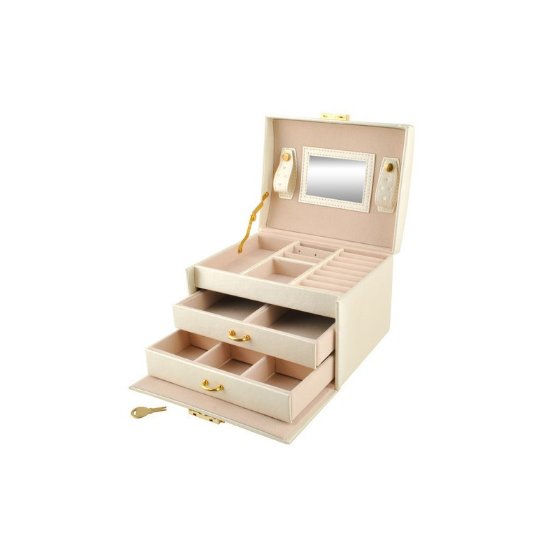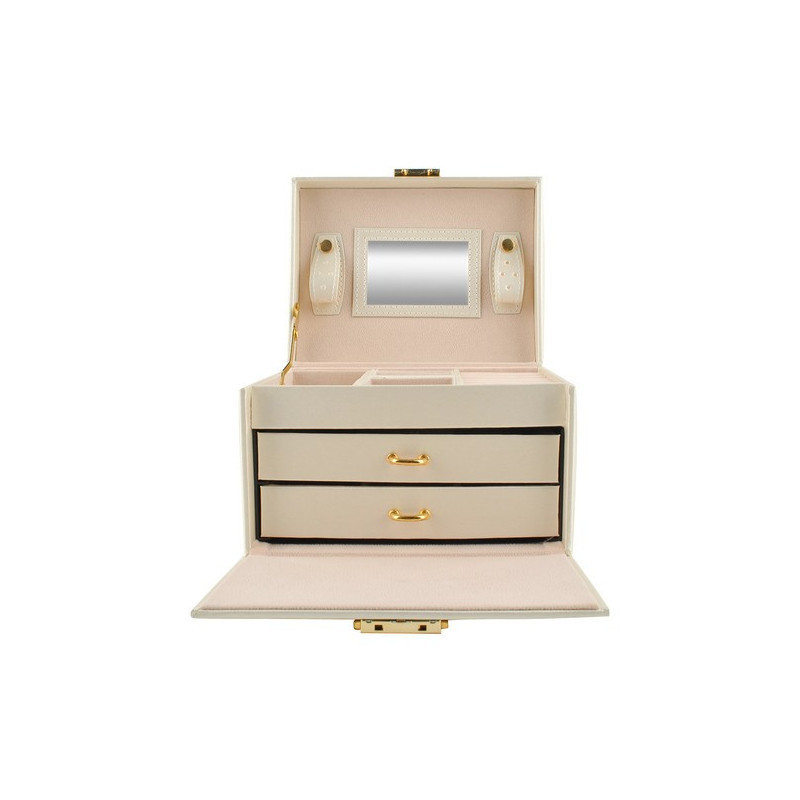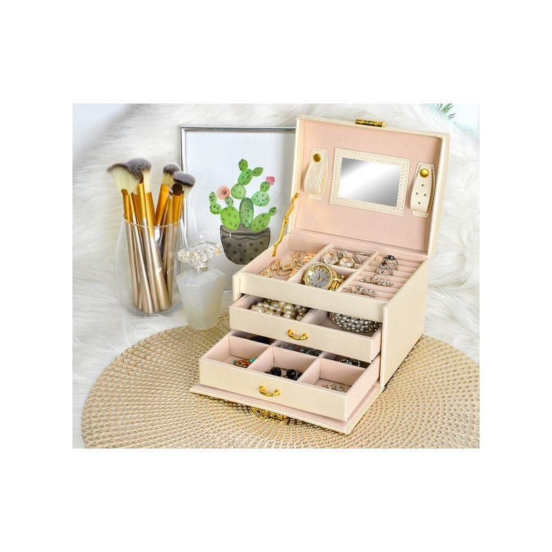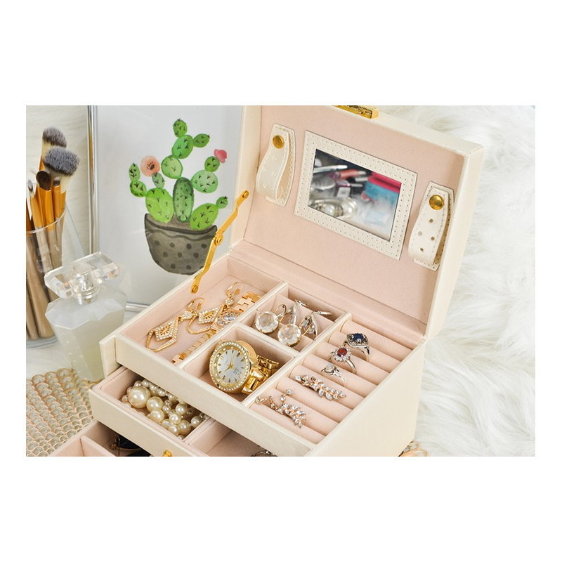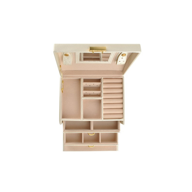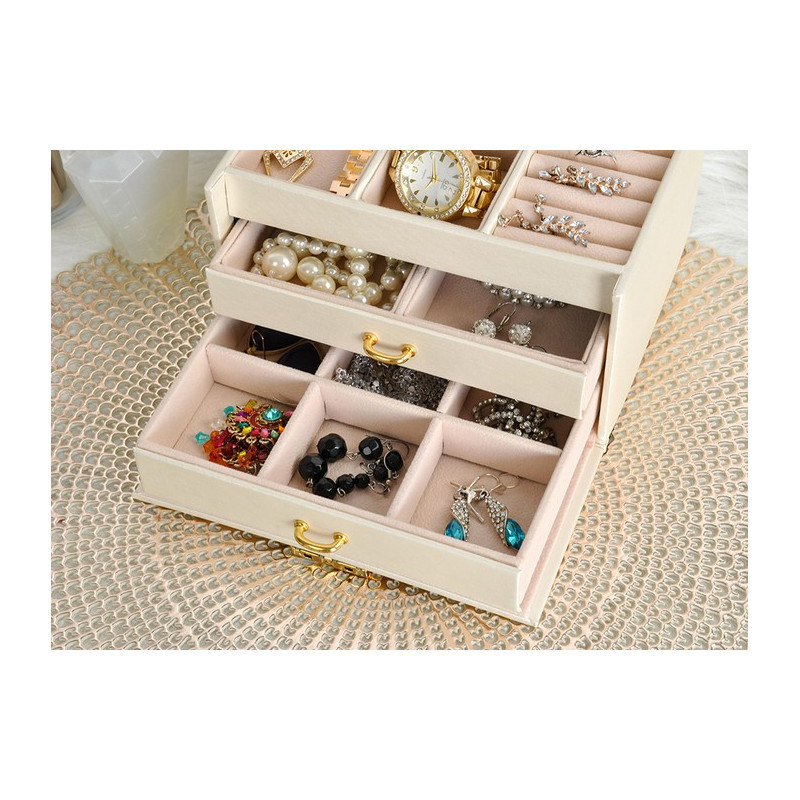A rekeszek puha anyaggal vannak bélelve, hogy megvédjék a finom és értékes darabokat a karcolásoktól. Az elegáns, időtálló design, a kellemes forma és az arany elemek pedig igazi luxus érzetet kölcsönöznek a doboznak.